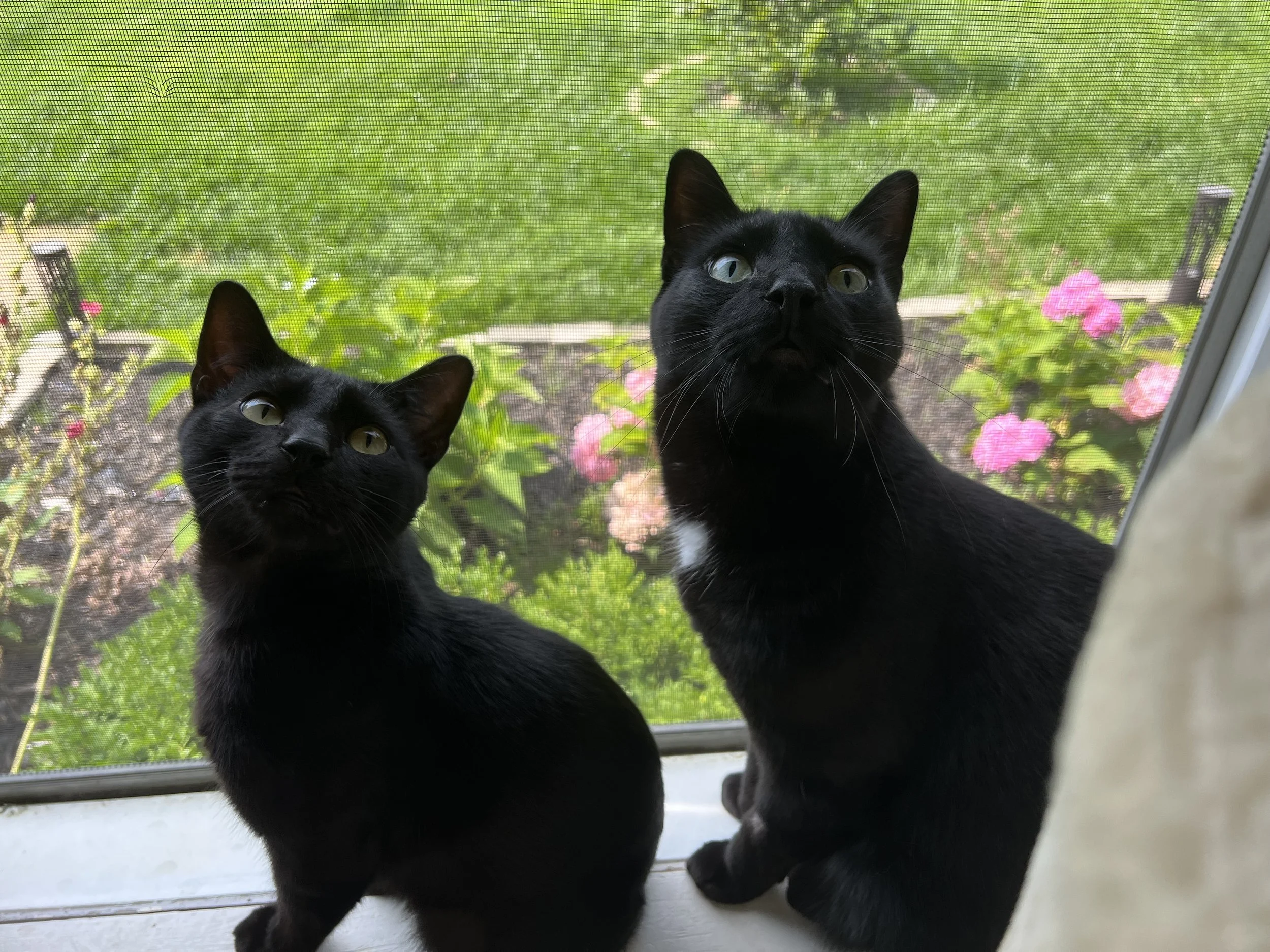 The Cats: Meeko (who operates on a single brain cell) and Remy (the most patient cat in the world).
