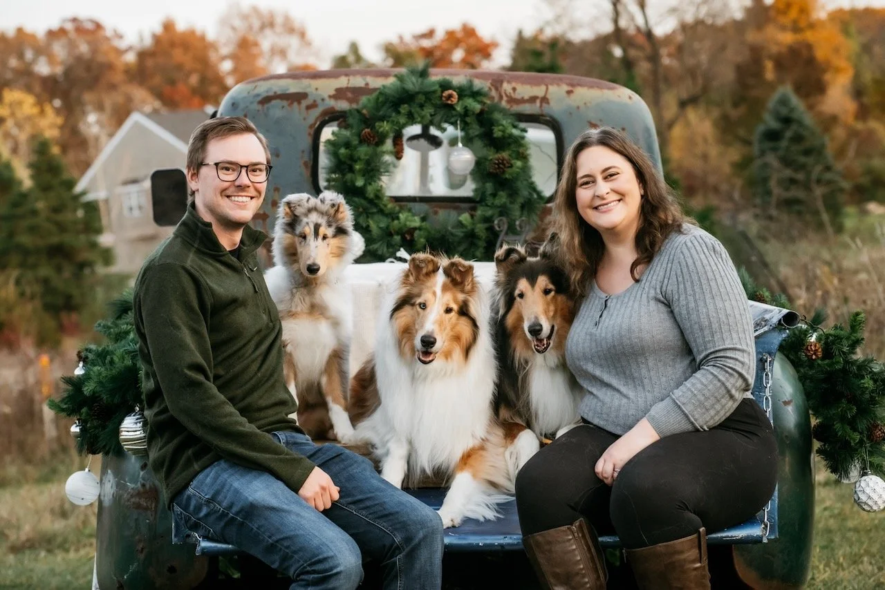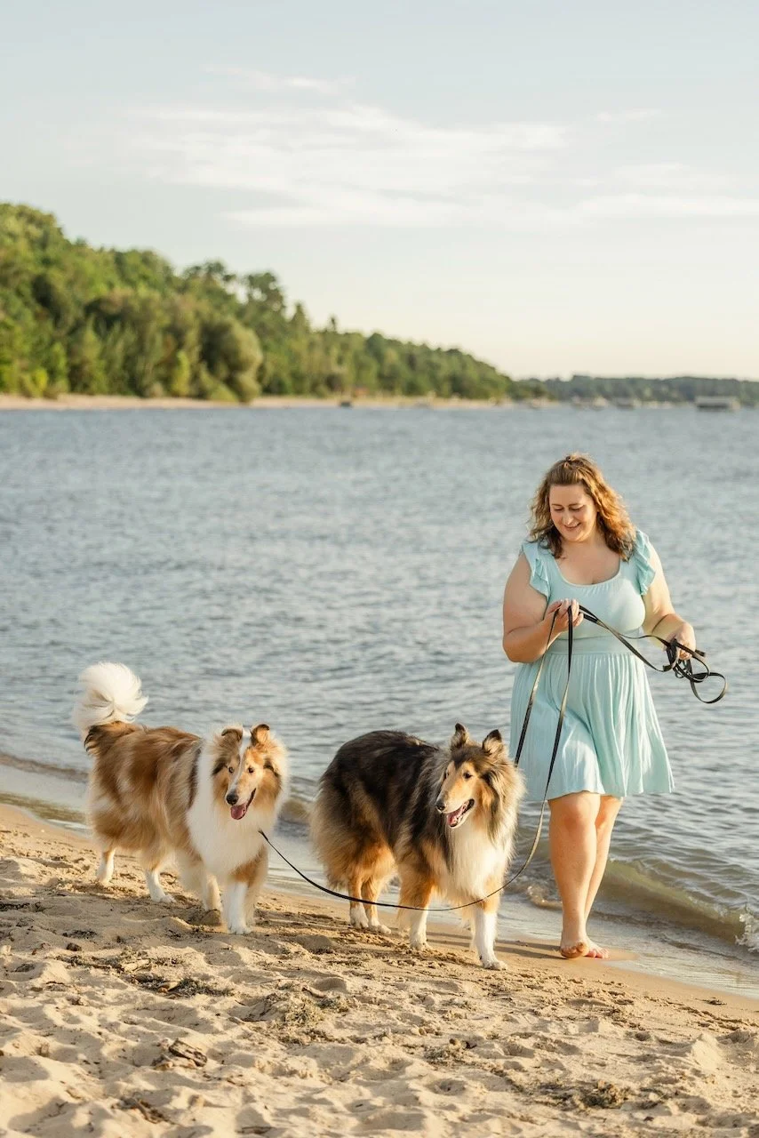 I recommend comfortable clothing in neutral or earthy tones that will complement the natural Michigan landscape (think blues, greens, grays, and tans). It's best to avoid busy patterns, large logos, or bright neon colors that can distract from the main subjects—you and your pet! I will send you a session preparation guide to make sure you feel confident and prepared.