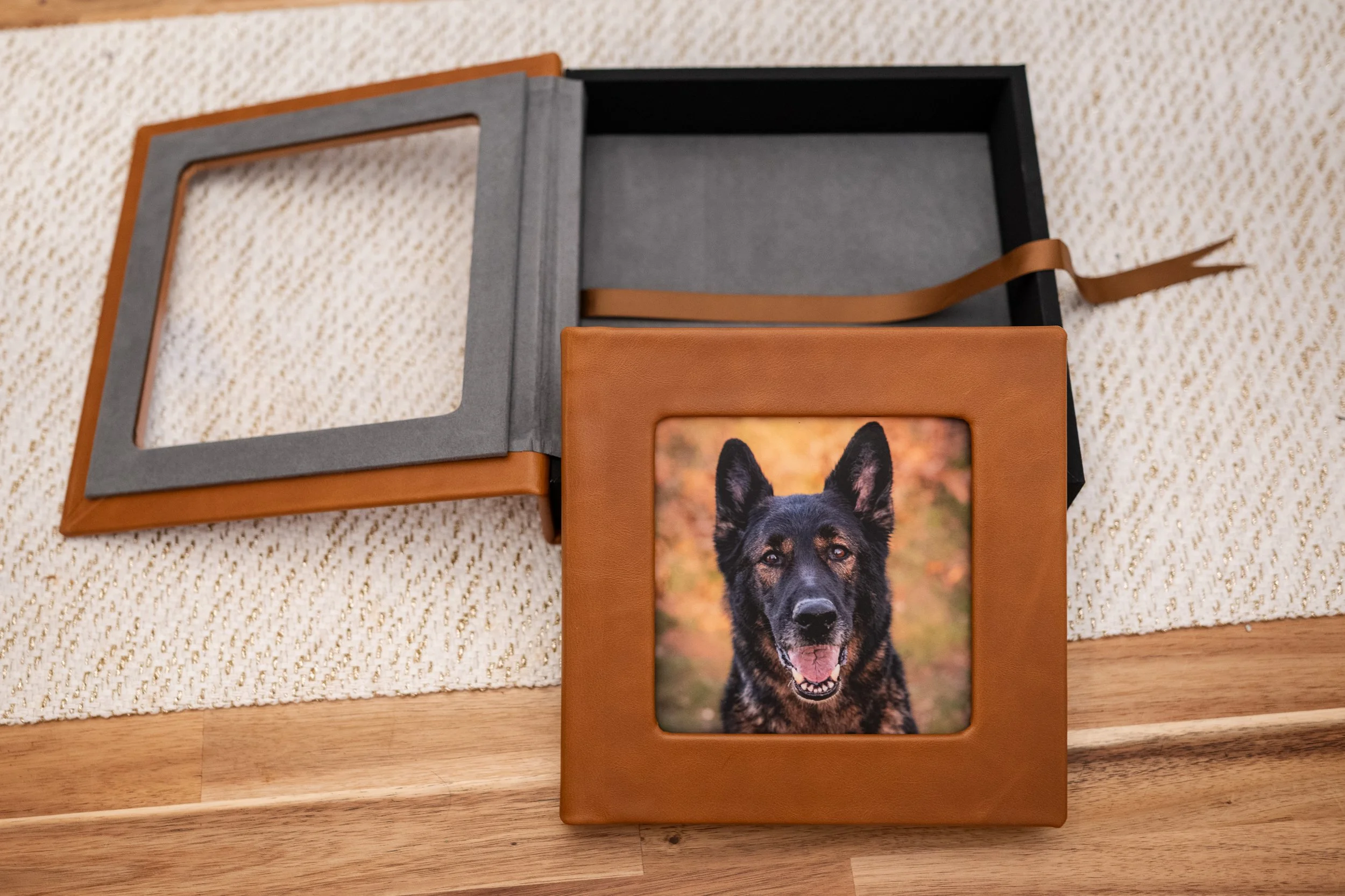 While a single portrait can capture a beautiful moment, a Signature Album tells the complete story of your session. It is a tangible narrative of your pet's unique personality and your cherished bond, designed to be held, shared, and revisited for years to come. There is a special kind of magic in flipping through the pages of a custom-designed book, preserving this chapter of your lives as a timeless family heirloom for generations.